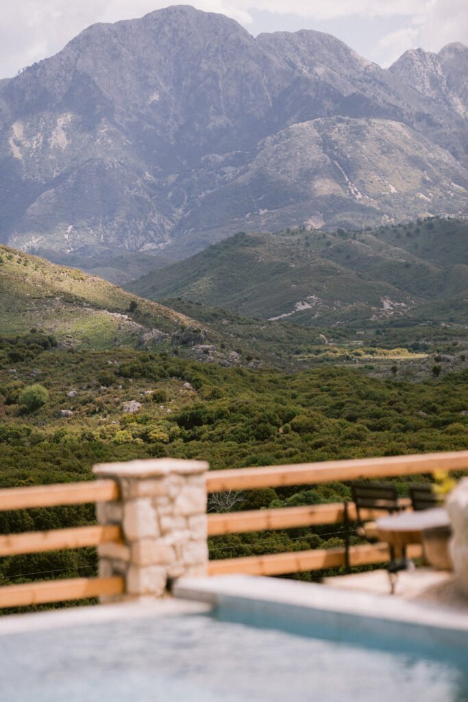 We’re passionate about combining yoga, mindful movement, and soulful hospitality and we’ve found the perfect setting at Azure Horizon in Albania. Nestled in a serene, hilly landscape, our villa overlooks a wide, untouched valley framed by gentle mountain ridges. Far away from the rush of mass tourism, this place offers a quiet connection to nature, where warm late-summer light and open horizons create a deeply grounding atmosphere.
